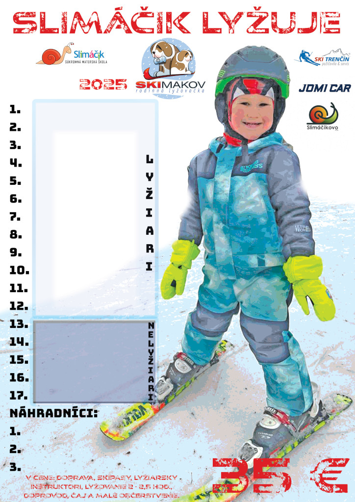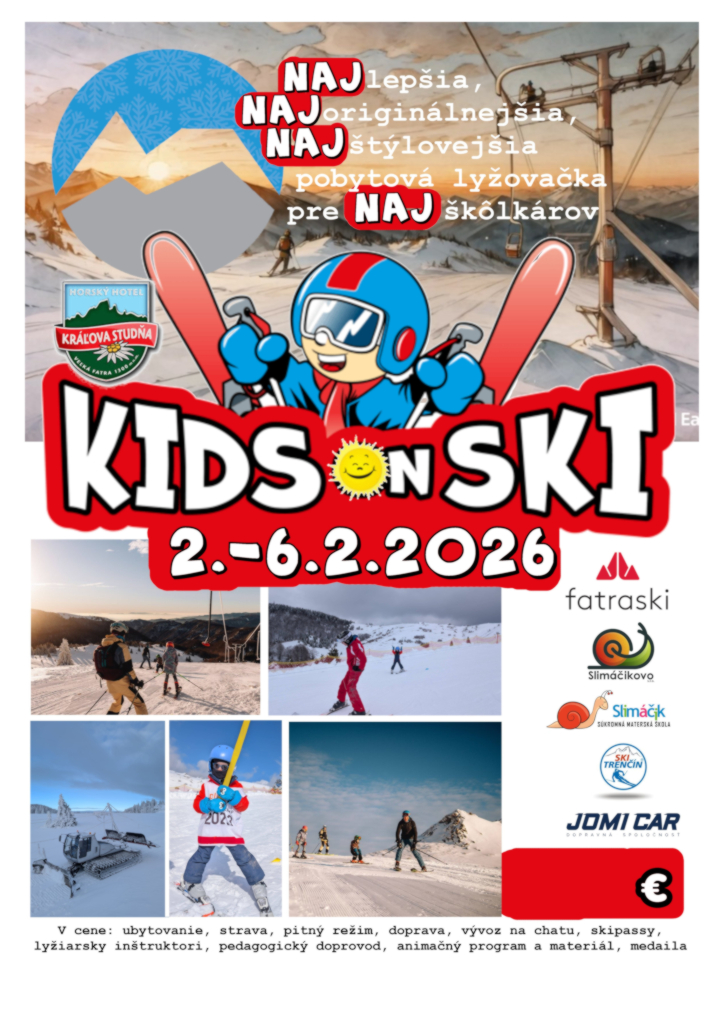 Pobytový lyžiarsky kurz zameraný na rozvoj a zdokonaľovanie lyžiarskych zručností získaných počas aktivity Slimáčik na lyžiach. Lyžovanie a animačný program od svitu až do mrku .Popis Aktivity: